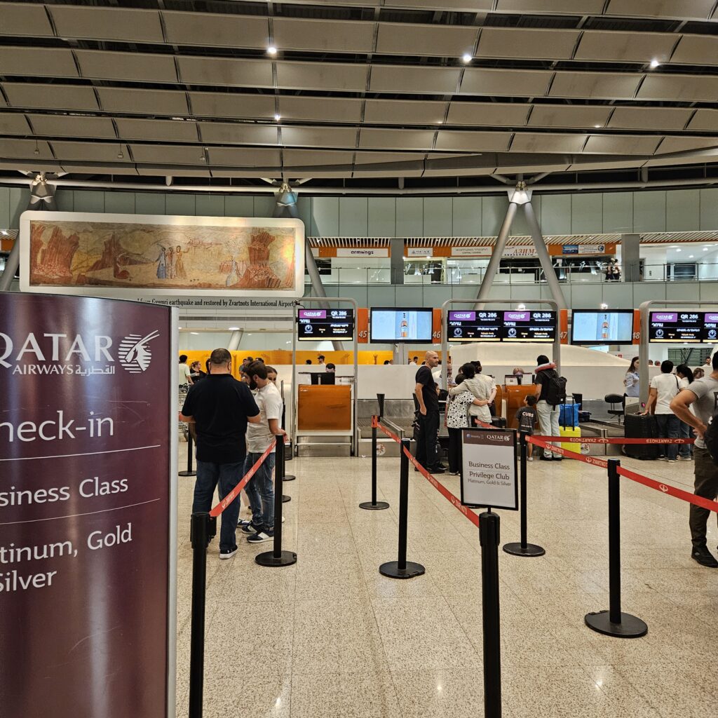 I got to the airport from the Holiday Inn Yerevan Republic Square at 1am with Yandex Taxi. Even during these hours, the airport was pretty crowded. Business Class helps speed up the check-in process, and there’s even a line for Business Class passengers in EVN to go through passport control and security check.
